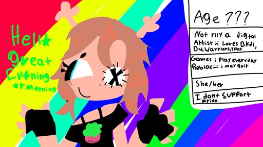 Hi im Goosework fav fandom bfdi dandys world forsaken my little pony fnaf and bluey Im also like to draw dandys world mostly my ocs are starly and doodle