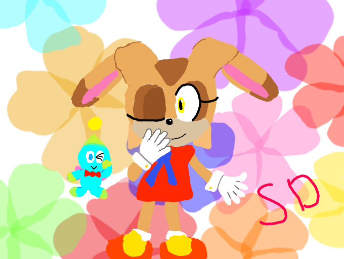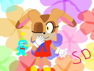 This picture was hard to draw, why? The touch sceen is crazy! It takes a long time to get to colors 3D than painting the picture itself and I think the touch screen hates Cheese and Cream's shoes. Any way Cream is one of my favourite characters.