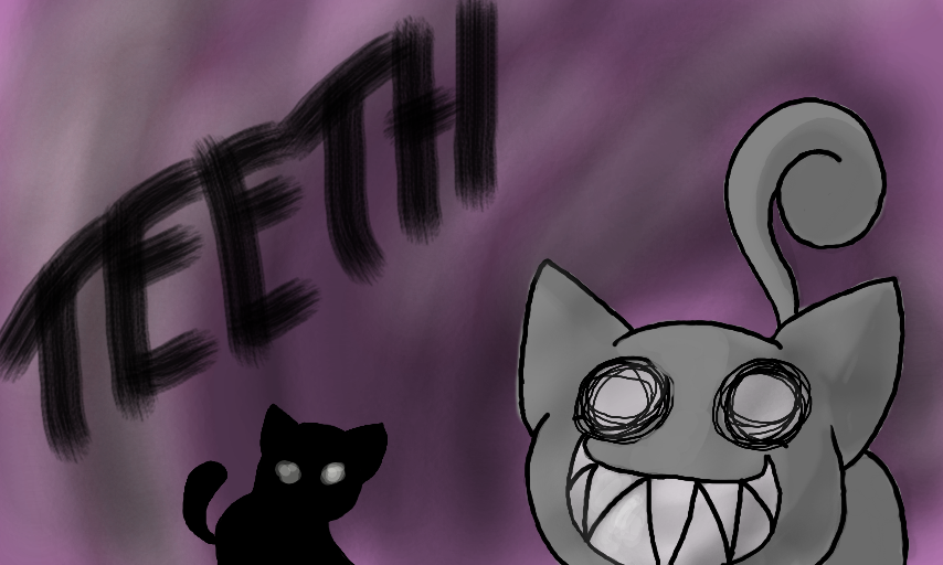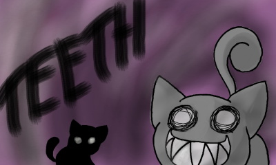 I made her to be a parody of the Smile Dog creepypasta. She was gonna be called Smile Cat, but the name Teeth just fit her more.