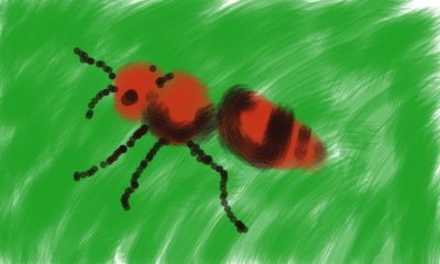 Dasymutilla occindentalis:female:a hairy antlike wasp ,the female has a retractable stinger and can deliver an incredibly painful sting.