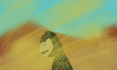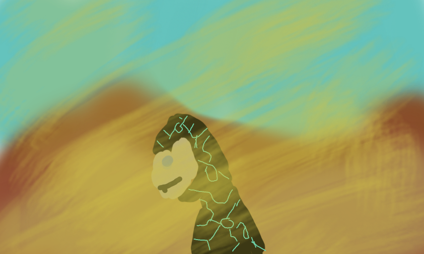 And so we see the wanderer up close, as he smiles through a sandstorm. I'll try to update this series daily. And to come up with a name. And to get some idea of what I'm doing with this series. And my art skills are still poor... Viewer input welcome.