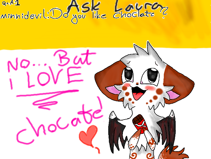Minnievil:Do u like choclate?Answar from Laura:No... But i LOVE choclate!!! <3I take ca 25 qustions ouo