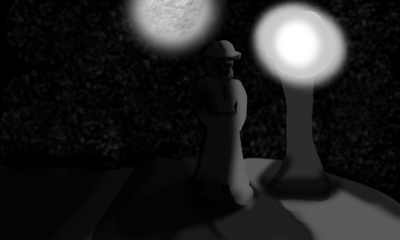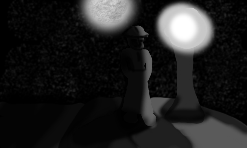 pretty good,,he should have 2 shadows on the floor (lesson 3) and the shadow should just be tilted on him a bit, as the post is a bit higher than him. still. great job! 7/10