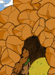 A traveller seaks a shelter to keep him from the suns heat.