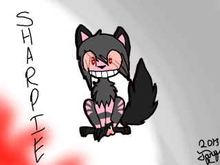 My Creepypasta Oc,Sharpie! TIS A FEMALE! #SharpieTheCat#Sharpie#CreepypastaHer phrase:"Smile Forever"The pink is skin.She tore her fur out.