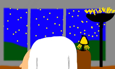 un salon et des etoiles en arriere-plan. cela va bien ensemble.