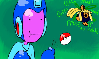 for link_the_hero...check his gallery out...he wanted a derpy picture of me with roll there too sooo this happened...it sounded better in my head... #megama #link #ditto #pokemon #roll #squirt