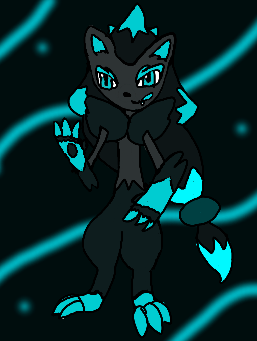 A new OC/ fancharacter! His name is NeonNight and his colors come from him evolving abnormally, giving him shiny Zorua colors, front paw pads, and huge back claws. He acts cool around his friends, but on the inside he's a softie. His only true fear is Aurashock's bad side.
