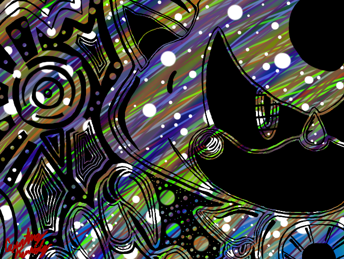 This literally is the coolest thing! I'm love how the lineart sits atop the funky colors below. Awesome 3D is awesome :D
