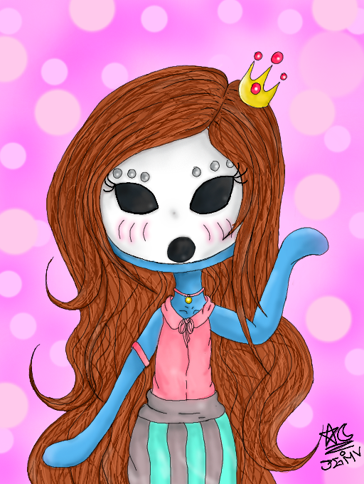 This is my OC Elisa, she insists that she wears a mask because its the "latest fashion" but really its because shes embarrassed.