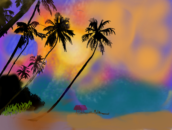 Awesome coloring !! XD And very good contrast with the palmiers ;)