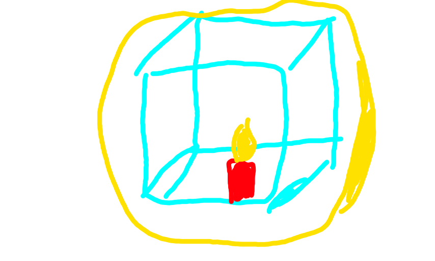 Die Flamme ist wie ein Schutz-schild das, die Kerze schützt.
