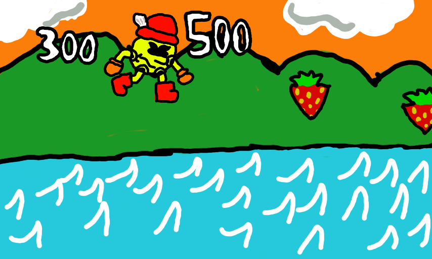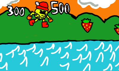 Pac-Man is Floating Over the River. Press the Direction Button Repeatly to go over!