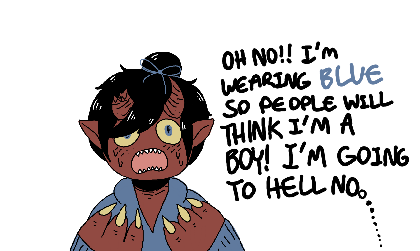 maybe hell only has blue clothes and all the girls are thought to be boys :o