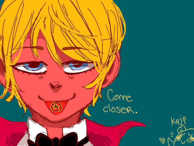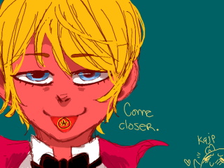 There's cake on my lip...? I don't remember eating cake.*wipes mouth with the back of my hand, anyway* Did I get it? o ^ oXDlol, anyway, awesome drawing, k9! I love the colorssss. e w e