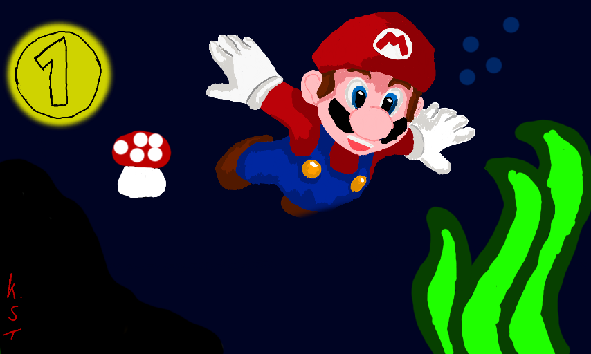Hier sieht man Mario der gerade Taucht. Hat er diese Münze im Hintergrund übersehen???
