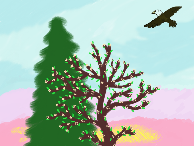 My first 3D painting! :D #eagle #sunrise #trees #flowers