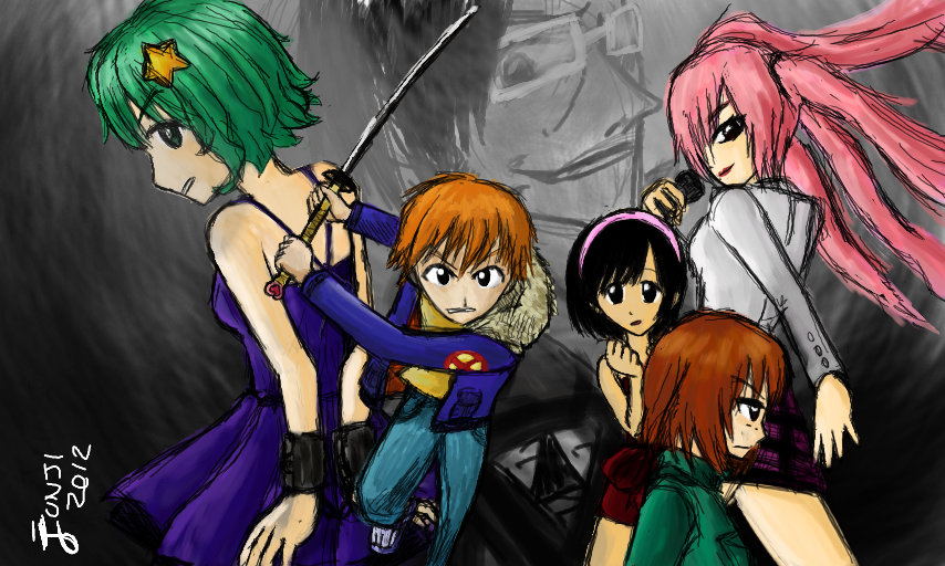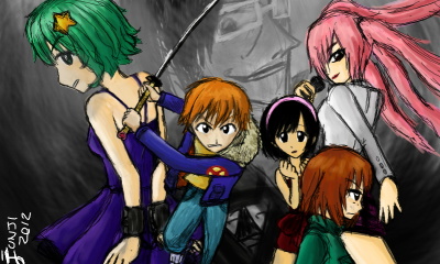 Scott, Ramona, Kim, Knives, Envy and Gideon. This was based on Scott Pilgrim's 6th vol cover.