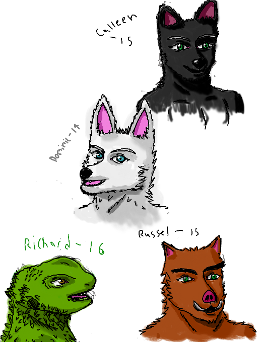 Anthro characters from a story. Each interected with one another in the past.