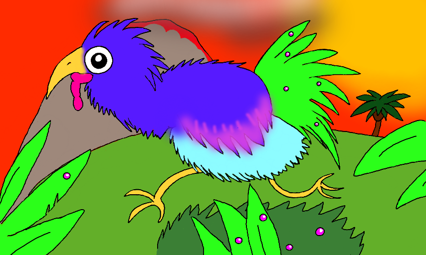 It hides itself crouching in berrybushes, disguising itself as one of them, waiting for its prey. Just a few people were able to see one of these graceful, ancient birds in there lifetime.. and lived to tell others about it. Just kidding. It is pretty useless and pathetic. Legends say when you listen closely you can still hear it in the deep of the jungle.. GOBBLEGOBBLE