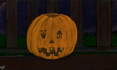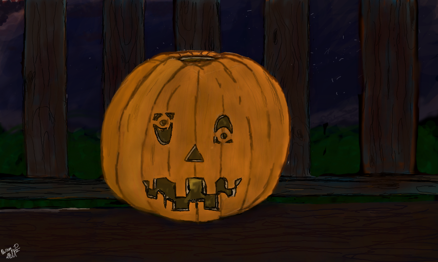 just a carved pumpkin sitting on a porch at night