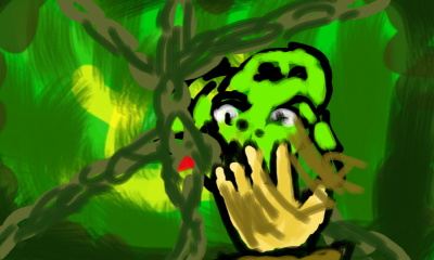 A boy discovers a frog. First image made in Colors 3D.