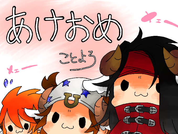 ことしもよろしくおねがいしま~すひだりからルーク、ジョニィ、ヴィンセントでおおくりいたしましたァ。