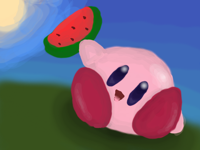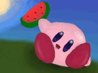 Just like kirby to celebrate with watermelon. XD