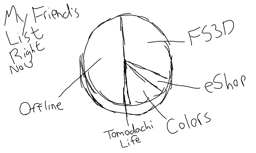 Idk, it's kinda funny. I literally have only one person on my list playing Tomodachi Life. Everyone else is either on Colors, FS3D, or the eShop.