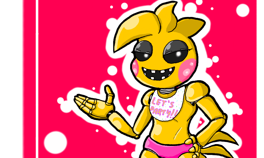 FIRST TIME LEGITIMATELY DRAWING TOY CHICA AND I'M REALLY REALLY PROUD OF IT. :D #fnaf #toychica #chica #chicken #pink #yellow #party #3d