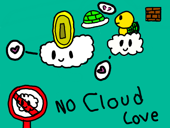 This lakatu is Jelous his cloud found love so instead of being civilized he threw a koopa shell at wisp (lakatus cloud lover) and made a sign no cloud love :( How rude!! hope you like it
