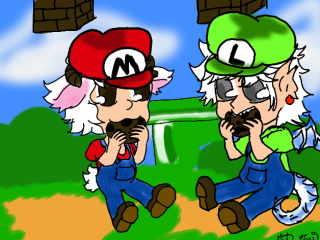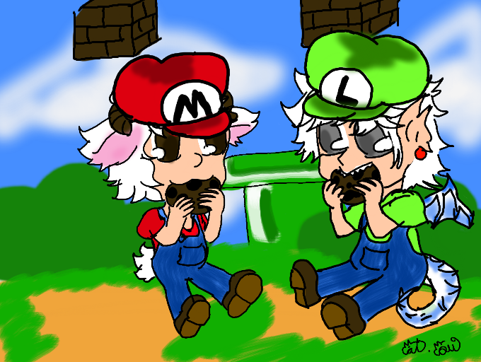 i was painting quietly until i realize that his clothes are those of mario and luigi .. my mind deceives me