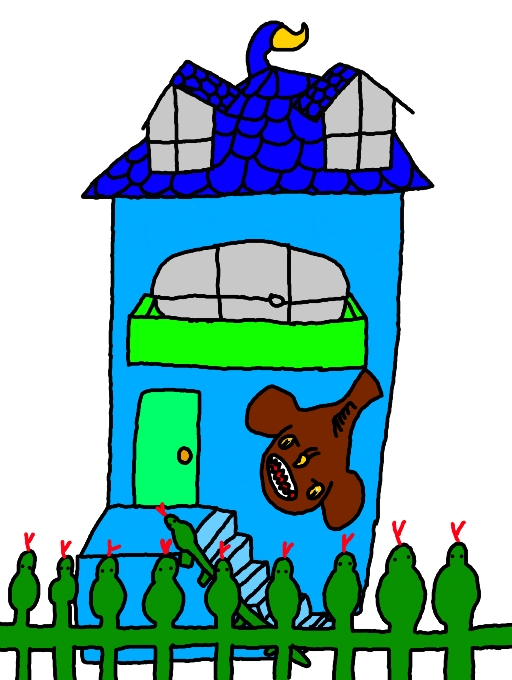 I went to San Francisco last month, and there were all these really skinny Victorian houses called Painted Ladies. I like how mysterious and spooky they look. If I made a Painted Lady house, this is what it would probably look like. It has a monkfish design and a cobra fence/rail! It also is colored after Lophius the monkfish dragon. :D I wouldn't want it to be connected to other buildings because that seems like a fire hazard to me. D: