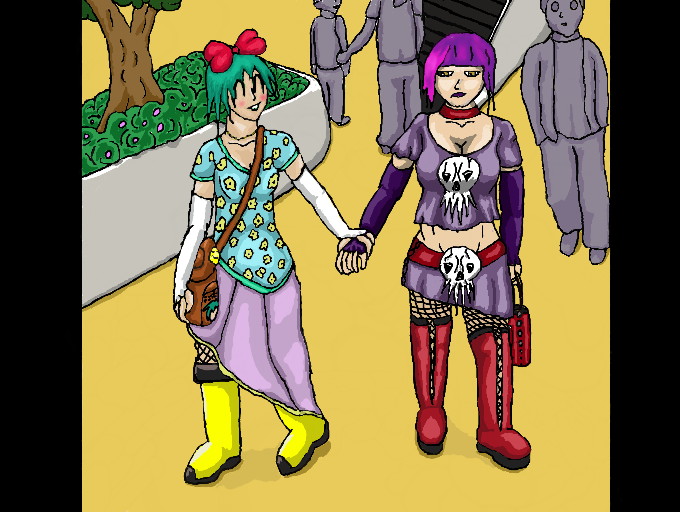 Mika and her older sister Samantha at the mall.