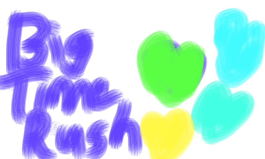 Big time rush is with dark blue color. Green,blue,and yellow hearts that I made!!
