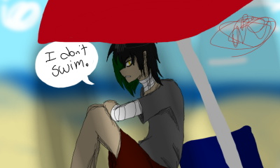 He knows how to swim, he just doesn't like the beach X'D