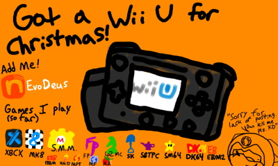 Probably should have said this sooner, but I got a Super Mario Maker Wii U bundle for Christmas, as well as $70 worth of gift cards, Mario Kart 8, and Xenoblade Chronicles X for Christmas. My cards went towards Freedom Planet, Shovel Knight, Shantae, Minish Cap, Super Mario and DK 64, Earthbound, Earth Bound, and Nightmare in Dreamland.