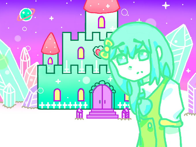 Still pastel and cute though, the green girl looks sad though! :x