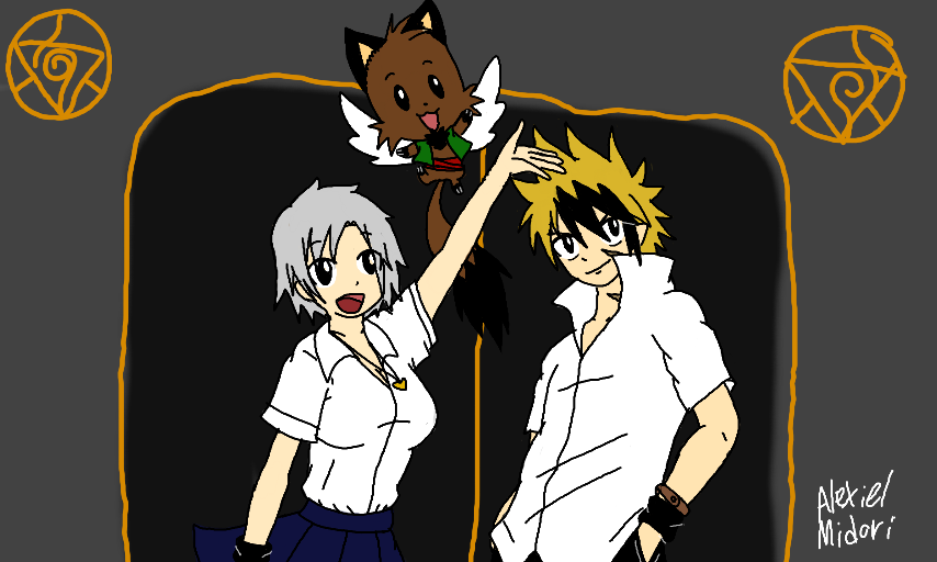 [Traced from stetch book] In the new Nano Warrior OVA we have Alekai, Snap , and soon to be girl friend Silver attending school for Humans and Demons but some problems start coming up.