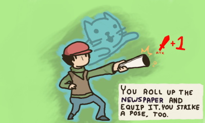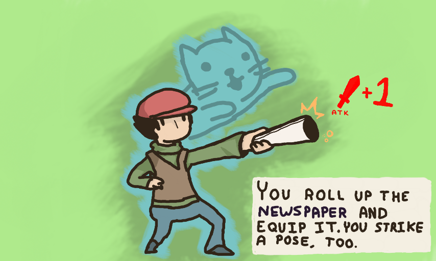 "YOU ROLL UP THE [NEWSPAPER] AND EQUIP IT. YOU STRIKE A POSE, TOO."(ATK 1) #0008 #comic #wanderjahria