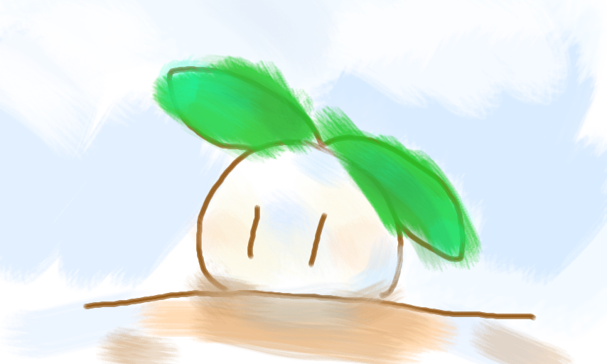 すいさいちっくないきもの。このいきものけっこうおきにいりです。あたまからしょくぶつがはえています。 ここだけのはなしモチーフはごみぶくろ