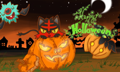 Is this the Halloween pic you were talking about when I posted my Litten/Pumkaboo/Mismagius painting? It looks great! Glad you decided to post it early!