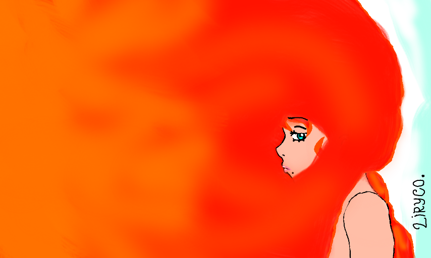 Dificil e demorou quase 2 horas para ser feita (1:57), Mas eu gostei do resultado... o cabelo ficou de um similar ao fogo, e foi o efeito na qual eu estava atrás. Primeira pintura digital e ficou aceitavel, agora é só buscar evoluir.