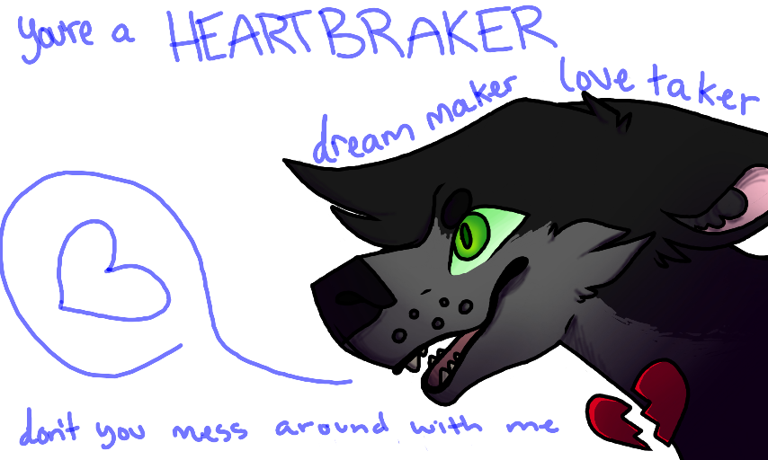 the song is heartbreaker by pat benatar <3 or i guess more like </3 right #lyrics #song #doggo #canine #furry #animaljam #oc #fursona #heartbreaker #love #awfuljoke