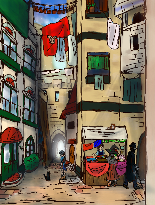 もともと いえのなかをかこうとしていたら なんだか うらろじっぽく みえたので こうしました←