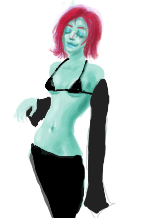 Strange Green girl with pink hair