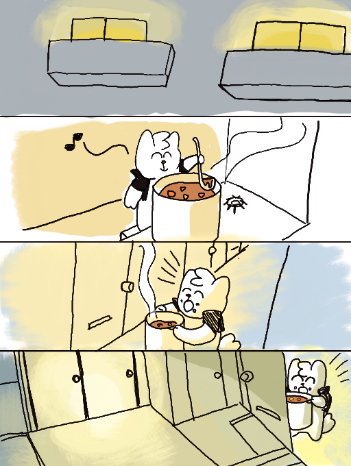 カレーがあまったので おとなりにおすそわけするブライカ。