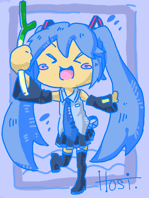アナログのラクガキが、きにいったのでいろをぬりました。さわやかな『なつ』すごしたいですね。 #miku