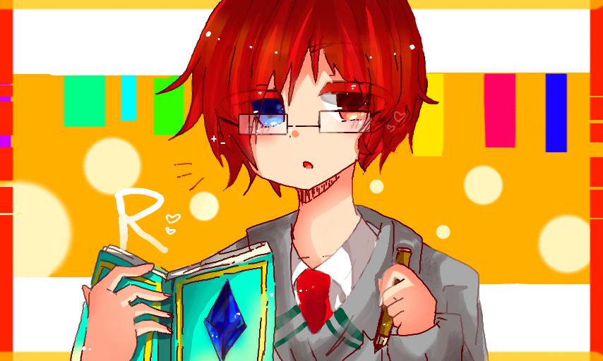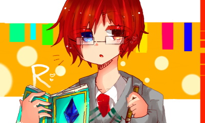 かかせていただきました…!!せっかくかかせてくれたのに…かためをかくすもうりょうをミスってしまった><, すみません…!!!いろがわからなかったので、くろかみのほうのひとみにしました、もうしわけありません…!!ですが、かくのすごくたのしかったです!あかがみにめがねでかっこかわいいキャラてとてもすてきだとおもいました…!!かかせてくれてありがとうございました^^*