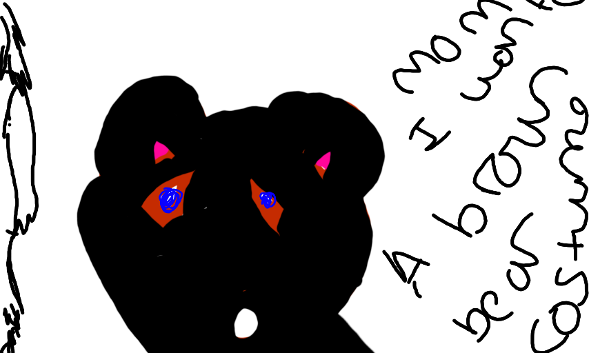 kid : mom i wanted a brown bear costume not a black one with brown eye thingys and its showing my eyes =/ ur stupidmom : i dont carekid : i hate you !!!